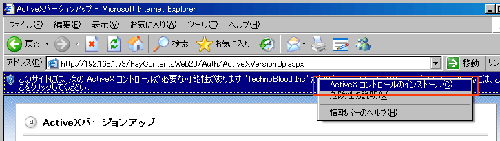 PayNetCafe発行システムで利用しているActiveXのバージョンアップをお願いします。