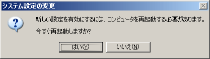 3)下記のように再起動が要求された際には、再起動後、再びこちらの画面にアクセスし、MACアドレス取得確認を行ってください。